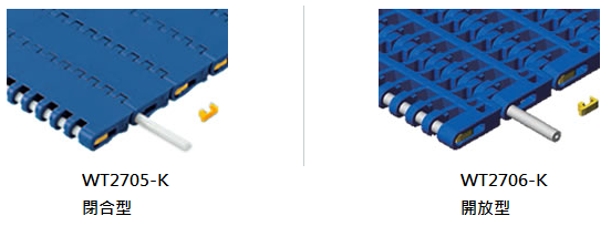 - 在塑鋼模組鏈條中具有最大的容許張力(62kN/m),並且為高剛性鏈條。適用于大量輸送及重物輸送