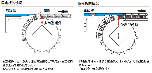 - 鍊條節(jié)距(19.05mm)小,可對應輕量小容器輸送
